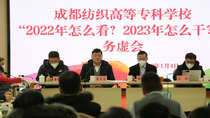 蔡玉波表示,2023年是落实执行年,重点是要抓好对中央、省委、省委教育工委部署要求的落实。学校将重点抓好“四个一”“两个重点”“三支队伍”。“四个一”即:一个目标,建设职教本科高校;一个中心,贯彻落实中办、国办印发的《关于深化现代职业教育体系建设改革的意见》;一个带头,班子带头,建设政治强、作风硬、讲团结、干实事的党政领导班子;一个引领,以“三心双艺”党建工作品牌建设为引领,推动学校高质量发展。抓好“两个重点”,即贯彻落实国家现代职业教育体系建设改革“14条”,扎实推进产教融合、科教融汇。产教融合要做深、做实、做高。做深,就是要努力做到全培养链融合,把企业的新技术、新工艺、新流程写到教材里培养人才;做实,就是要按“厂中校、校中厂”模式,实实在在地规划好建设好邛崃产教园区,引企入校,在校内就能培养学生动手能力,解决实习实训问题;做高,就是要与头部企业合作。做好科教融汇,就要推进有组织科研,采取“纺专+”模式,如纺专+企业、纺专+高校、纺专+团队、纺专+科研院所等,按照“大平台、大团队、大项目、大成果”的思路去做,积极参与行业企业技术改造、科技研发。建强“三支队伍”,培养打造一批教学名家、科技专家、管理行家,支撑和推动学校高质量发展。