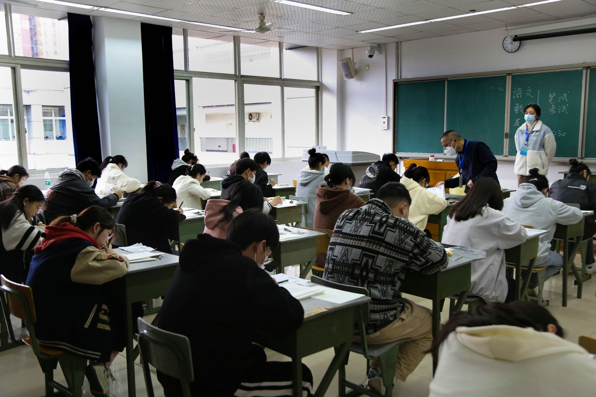 考试包含文化综合考试和综合素质测试两个环节。文化基础笔试共设立104个考场,其中普高类考生考场55个、中职类考生考场49个。职业技能综合测试考场77个。
