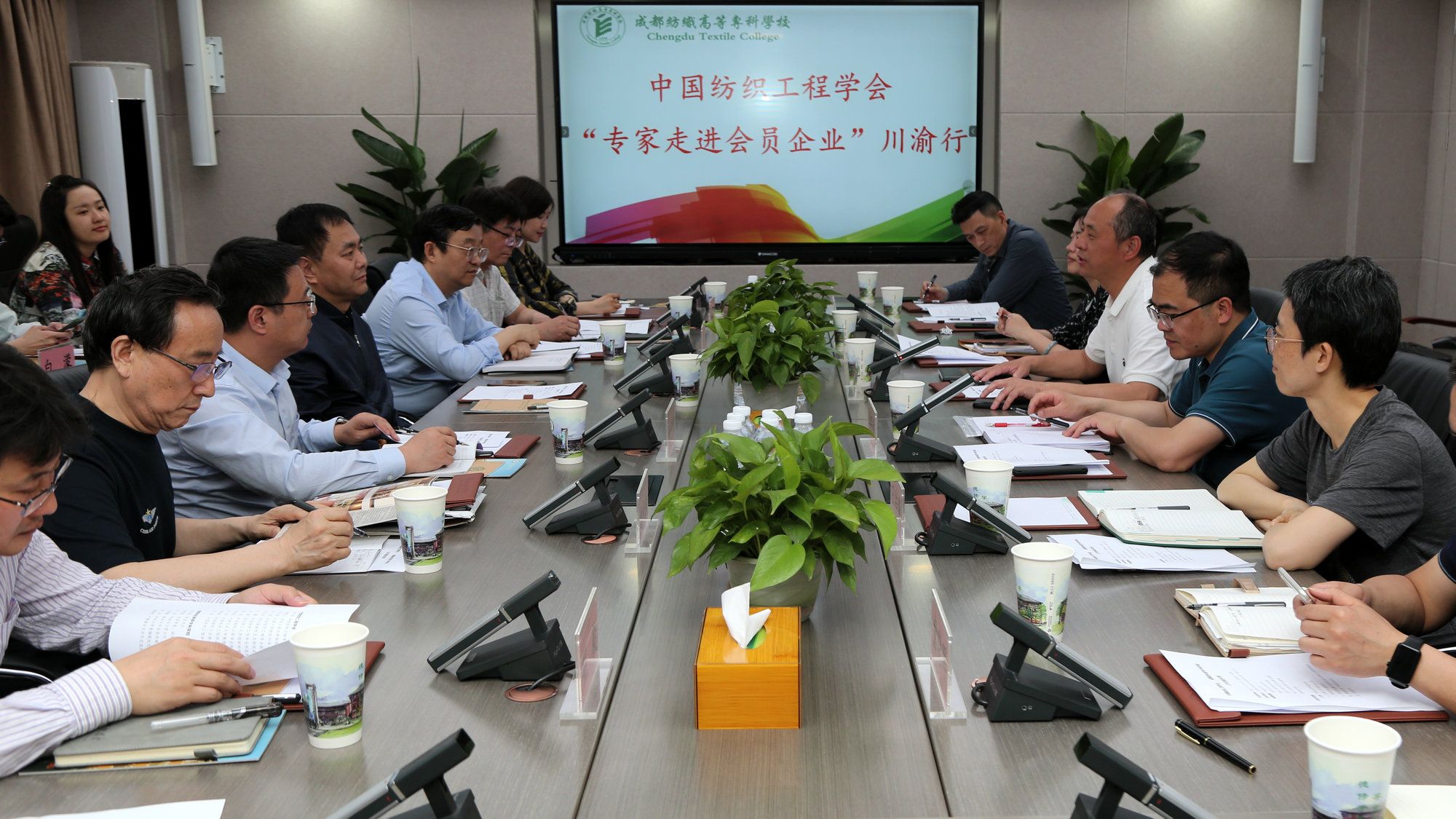 4月27日,中国纺织工程学会“专家走进会员企业”川渝行活动专家团来校考察,学校党委书记蔡玉波,党委常委、副校长李明富出席座谈会。