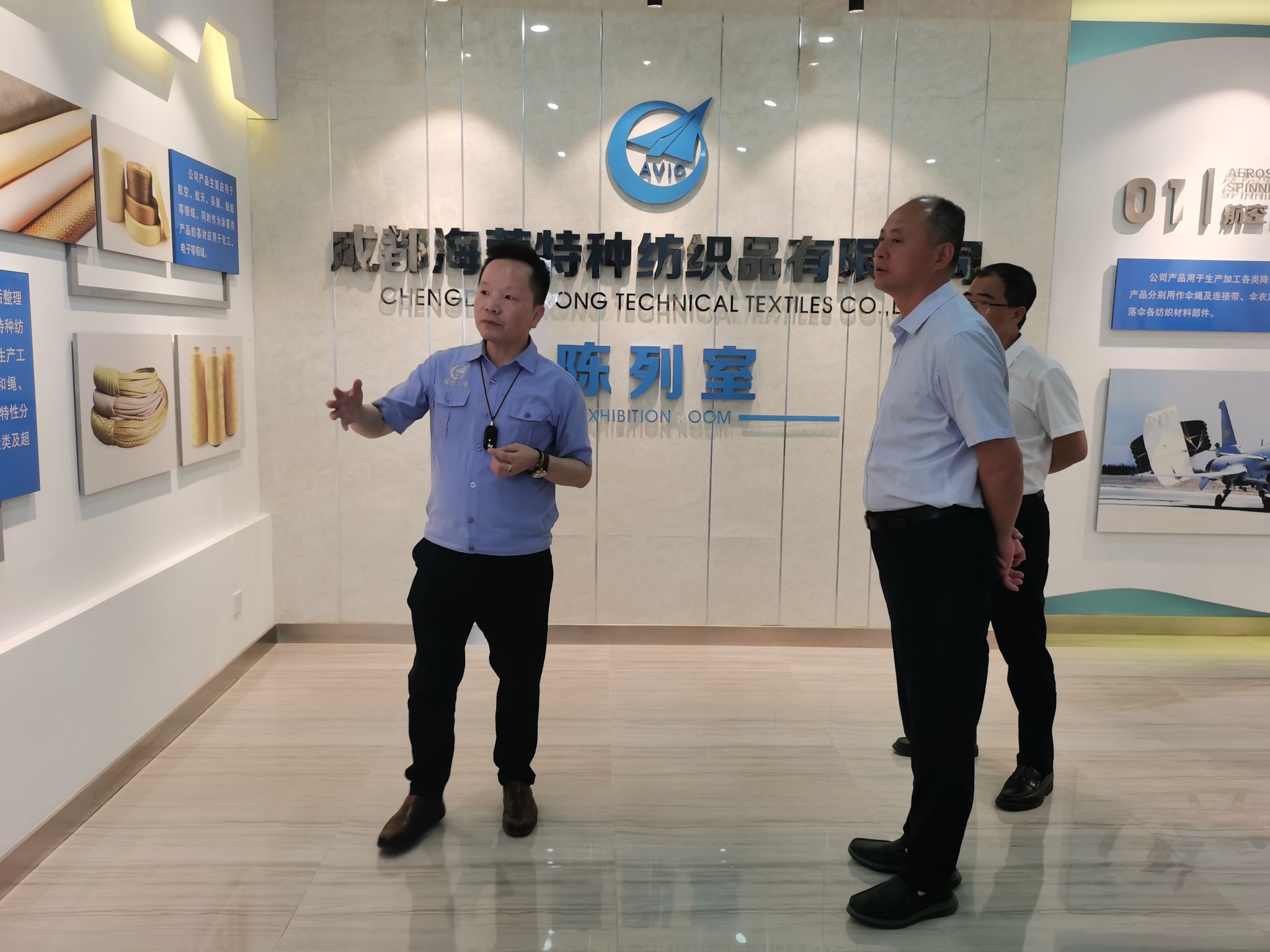 陈猛介绍了成都海蓉作为全国特种纺织品定点生产单位、国家级高新技术企业的有关情况,展示了应用于航天、兵器、电子、船舶、化工等领域的特种纺织材料与产品,肯定了我校在轻纺产业的重要地位与贡献,明确表示公司在特种纺织材料领域与我校具有很高的契合度,愿进一步加强与学校的战略合作,持续深化双方在高新产品创新研发、技术技能人才培养等方面的交流融合。