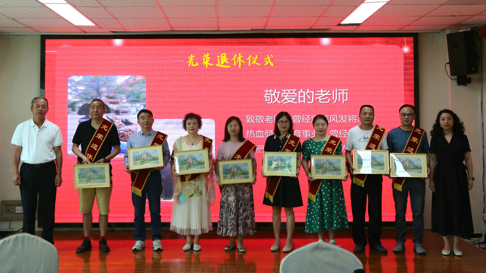岁月里流光溢彩,数十载桃李芬芳。6月9日,学校为19名退休教职工举行光荣退休仪式,以庄重而温馨的方式向退休同志致以崇高的敬意,感谢他们为学校发展、学生成长成才所作的贡献。这也是学校以“三心双艺”党建工作品牌为引领,关心关爱退休同志,共筑“暖心成纺”的生动体现。