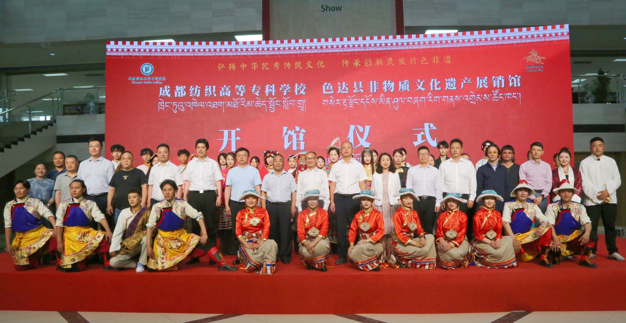 我校党委书记蔡玉波在致辞中指出,色达县非物质文化遗产展销馆的建成充分彰显了民族团结一家亲的无穷力量,彰显了政校行企优势互补、合作共赢的无穷力量。下一步,将通过建设色达非物质文化技艺研究中心、色达非物质文化传承创新中心、非遗大师工作室等方式,将该馆打造成中华优秀传统文化技艺研究平台、非遗传承人研习平台、青少年旅游研学平台以及非遗文创产品研发平台,为促进民族团结进步、助力乡村全面振兴、推动非物质文化遗产保护和传承贡献力量。