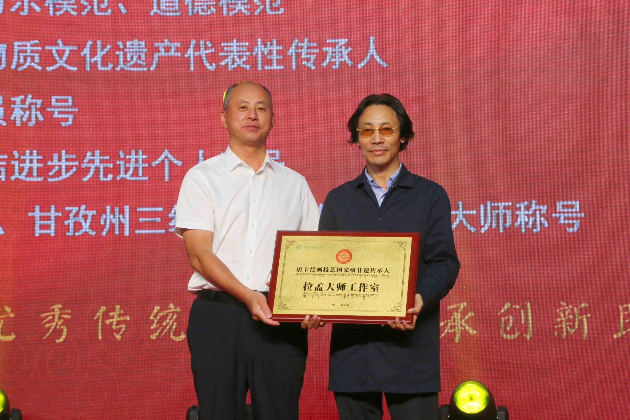 活动现场还举行了国家级非遗项目藏族唐卡(噶玛嘎孜画派)代表性传承人拉孟大师工作室授牌和《色达非物质文化遗产集》图书首发仪式。