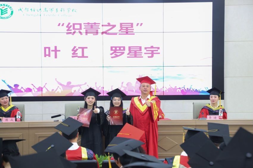雷迪波尔服饰股份有限公司企划部总监李迪,四川轻化工大学和我校部分中层领导及辅导员参加活动,为2023届材料科学与工程、服装设计与工程高端技术技能型本科专业毕业生颁发毕业证书并授位。
