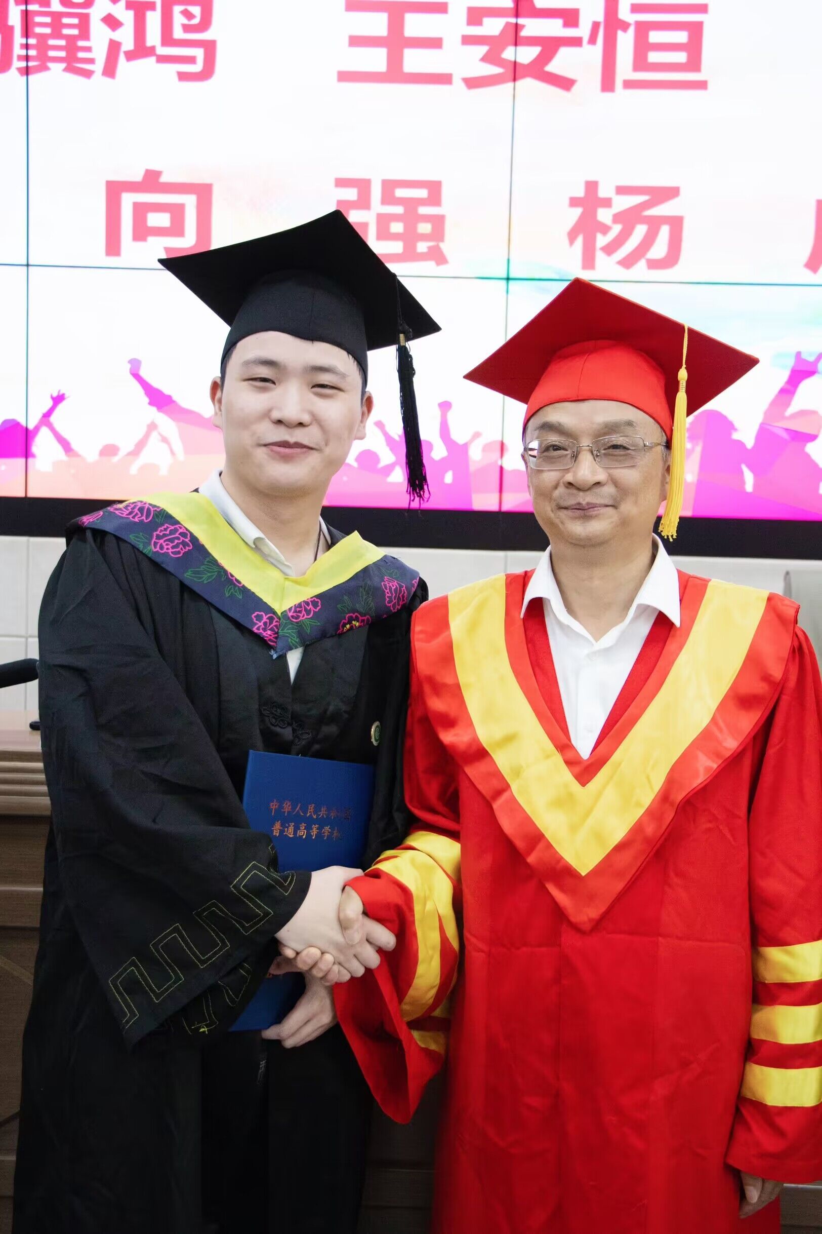 毕业典礼后,我校学工部部长朱瑶主持授位暨唱名仪式,与会校领导、学院负责人逐一为毕业生代表颁发学位证书、拨正流苏、授予学位、合影留念。