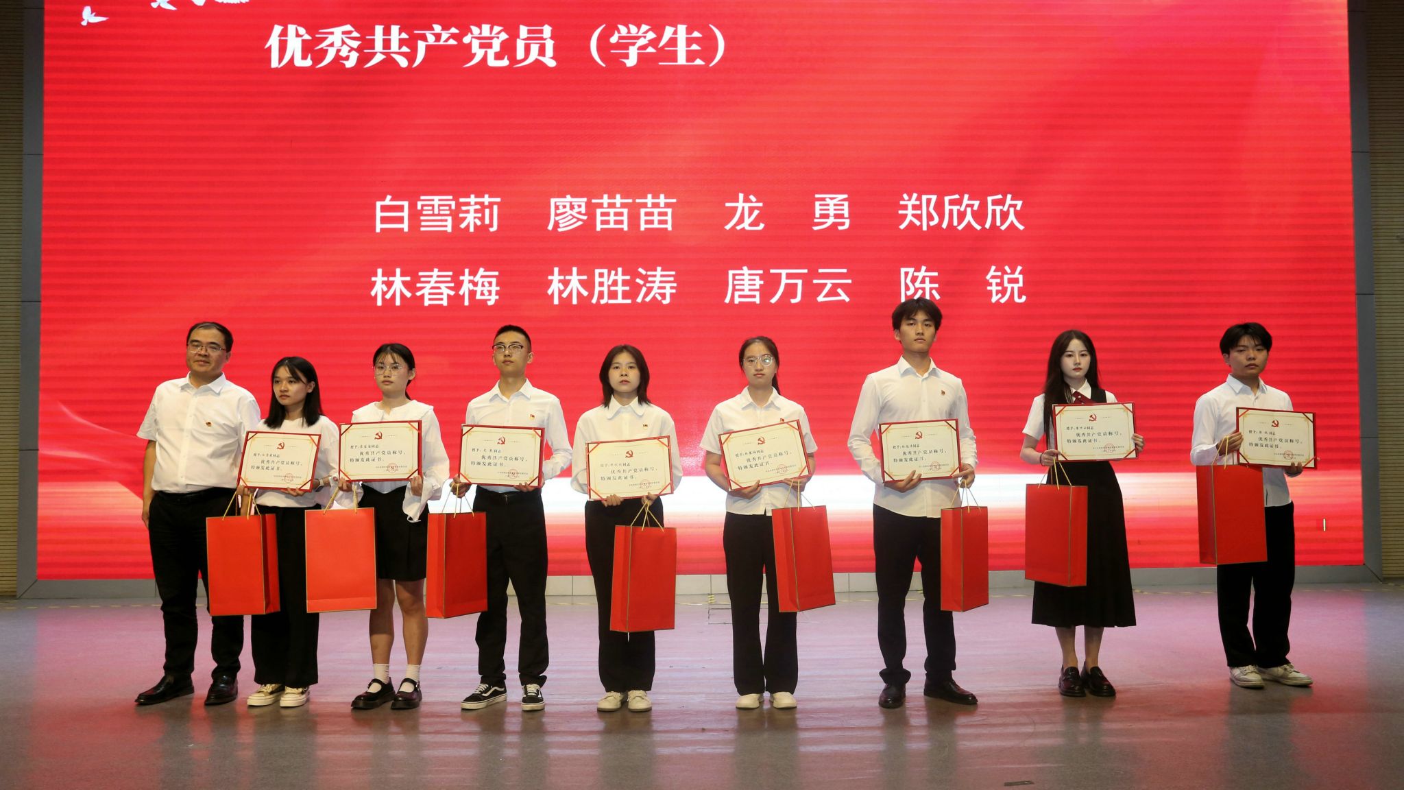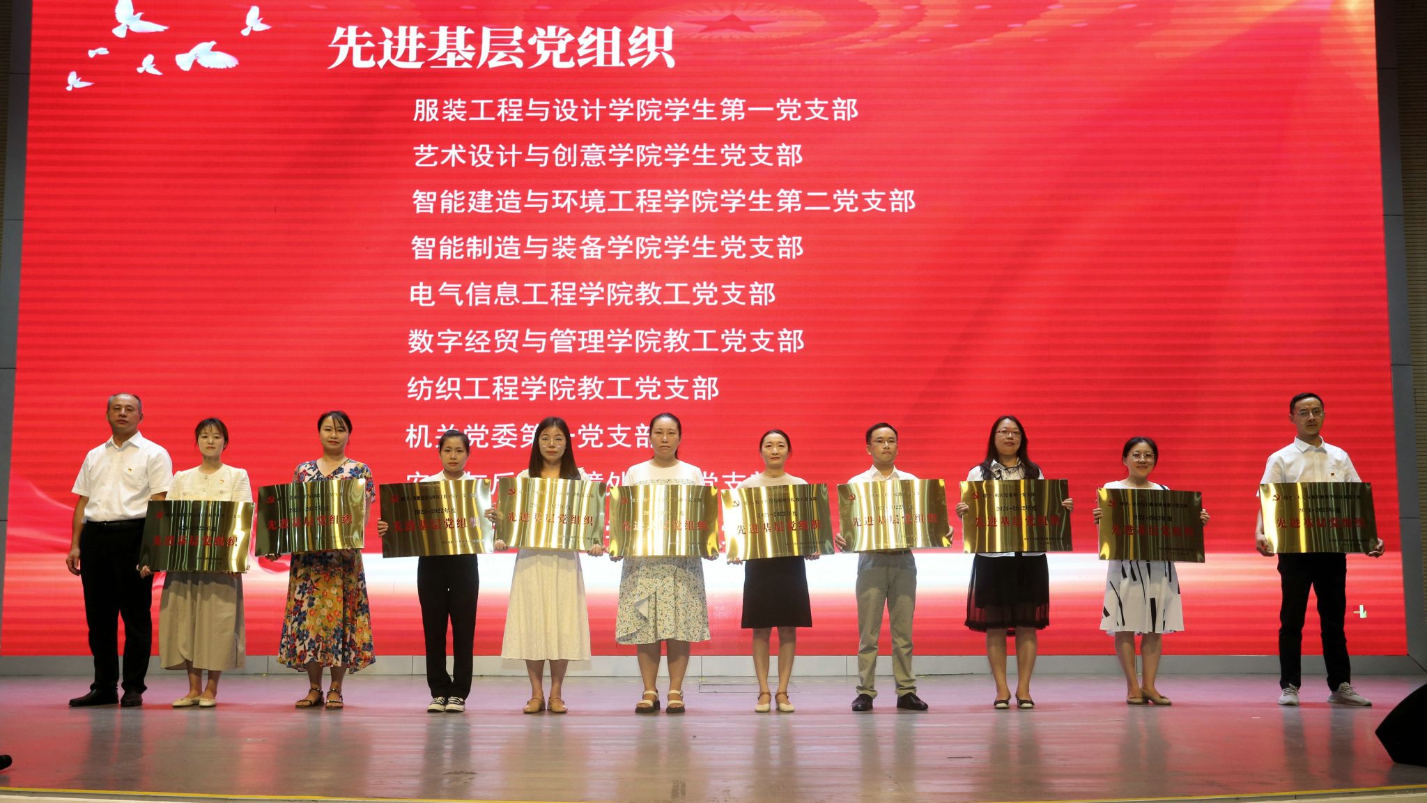 会议表彰了杨岚等26名教工优秀共产党员、白雪莉等8名学生优秀共产党员、毛金龙等15名优秀党务工作者、服装工程与设计学院学生第一党支部等10个先进基层党组织。