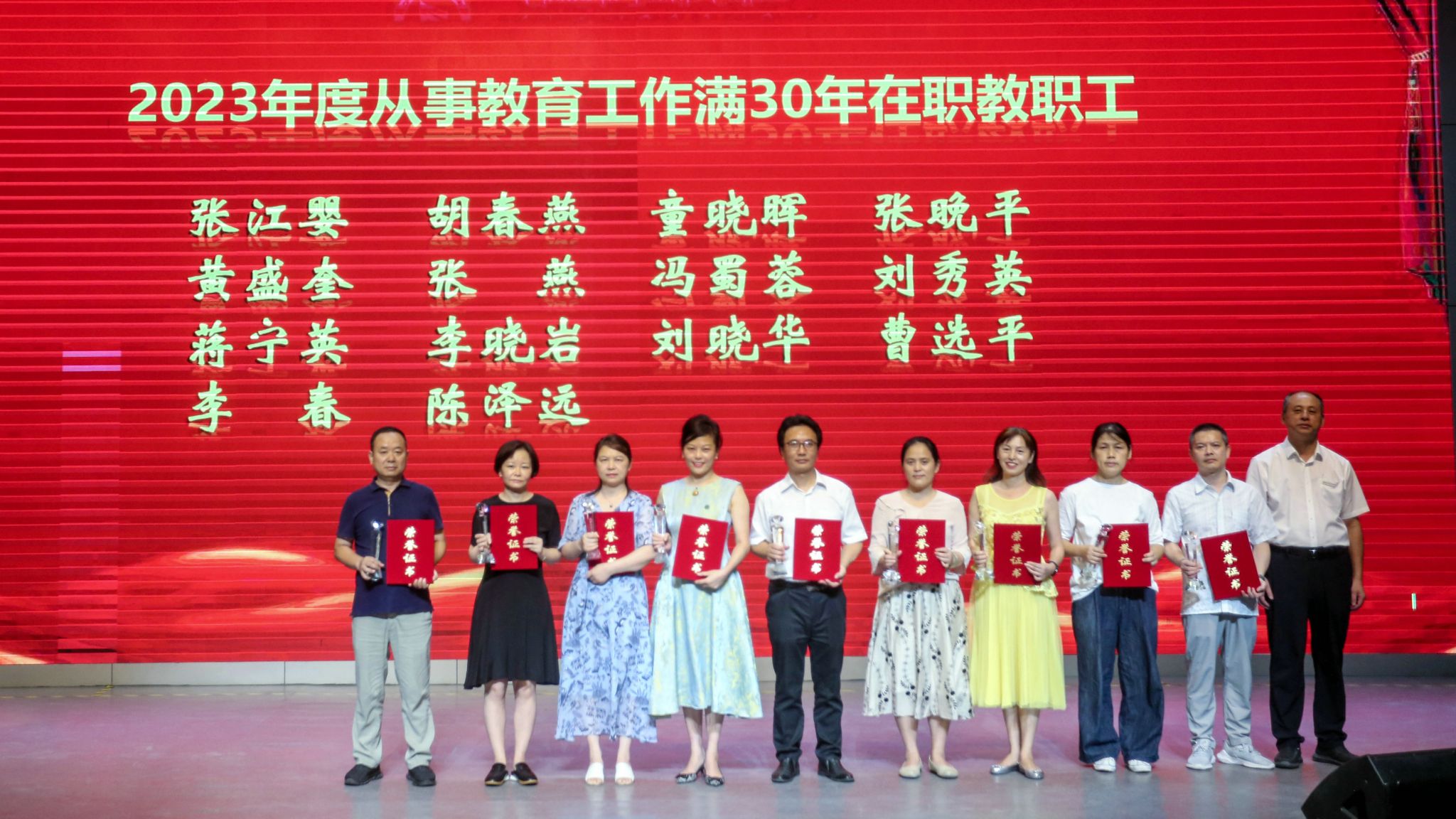 随后,与会校领导为荣获“2022年度特别贡献奖”的6个集体、49位个人,以及2023年度从事教育工作满30年的14位在职教职工隆重举行了颁奖仪式。