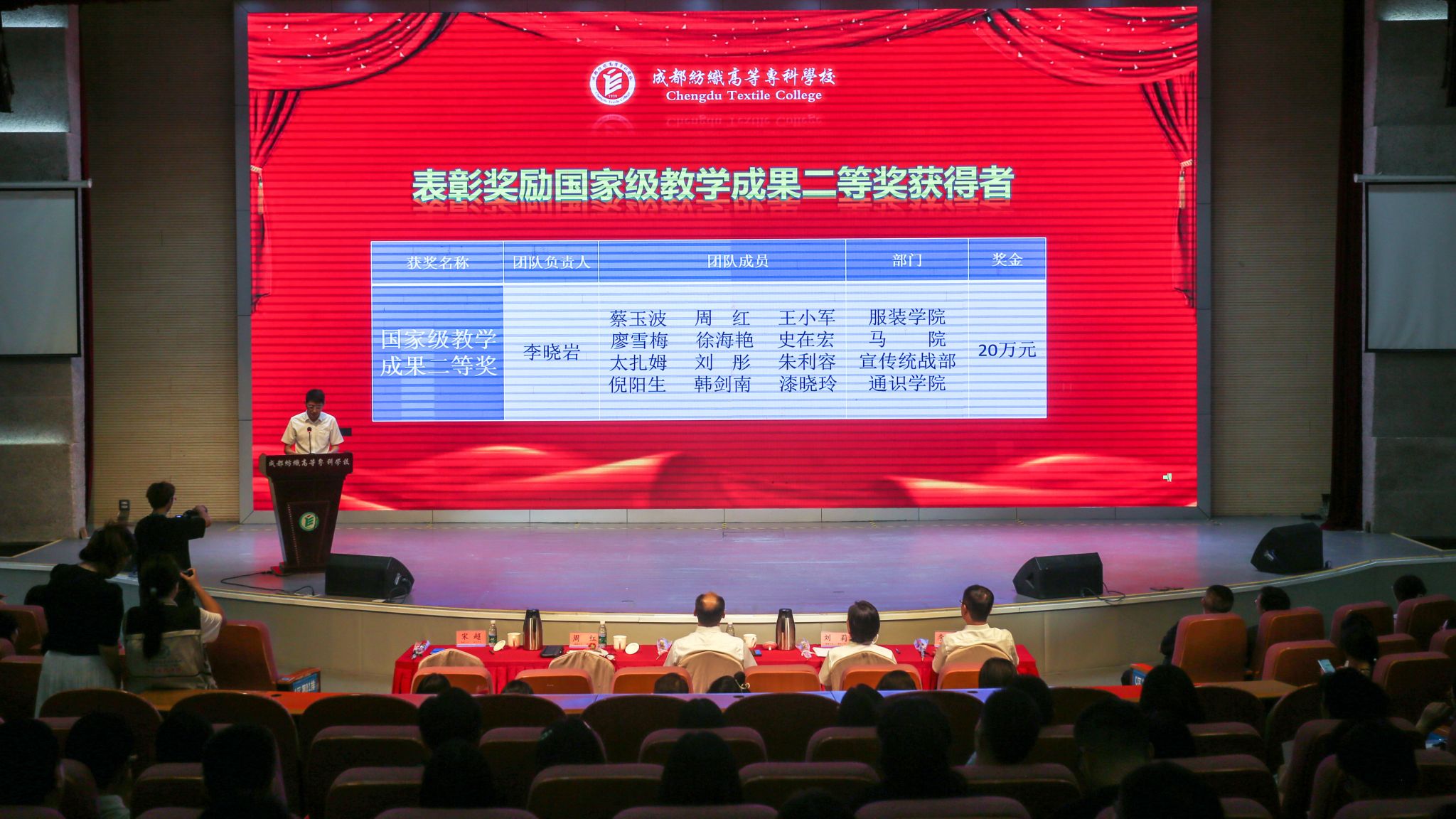 李晓岩作为获奖教师代表发言,满怀深情地回忆了自己从教30年来不断努力、不惧挑战,在创新中进步、因热爱而担当的成长经历,表示“50岁的我,已经和学校血脉相连”,自己取得的成绩离不开领导的支持、团队教师的努力,是学校为教师建舞台、搭平台、做后台的结果,愿“我们以成纺为荣、让成纺以我们为傲”,不忘初心,积极作为,继续为学校高质量发展贡献力量。