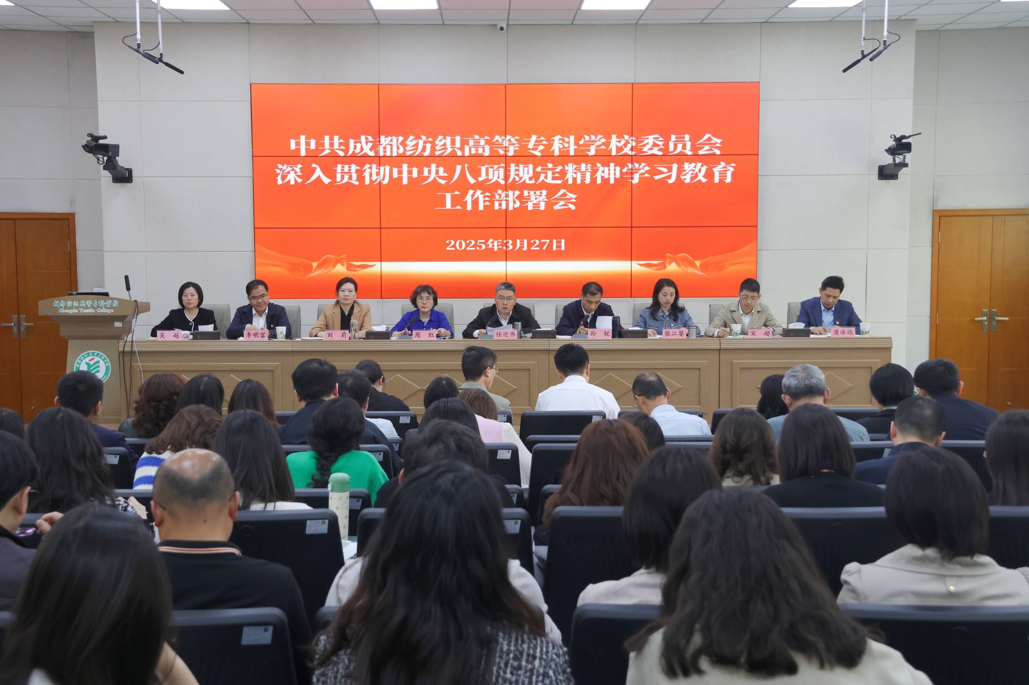 3月27日下午,亚洲午夜成人满18免费网站党委召开深入贯彻中央八项规定精神学习教育工作部署会议,学习传达习近平总书记关于深入贯彻中央八项规定精神学习教育的重要讲话重要指示精神,中共中央办公厅《关于在全党开展深入贯彻中央八项规定精神学习教育的通知》精神和省委、省委教育工委工作部署要求,对学校开展学习教育进行工作部署。党委书记任迎伟出席会议并讲话,党委副书记、校长孙锐主持会议。