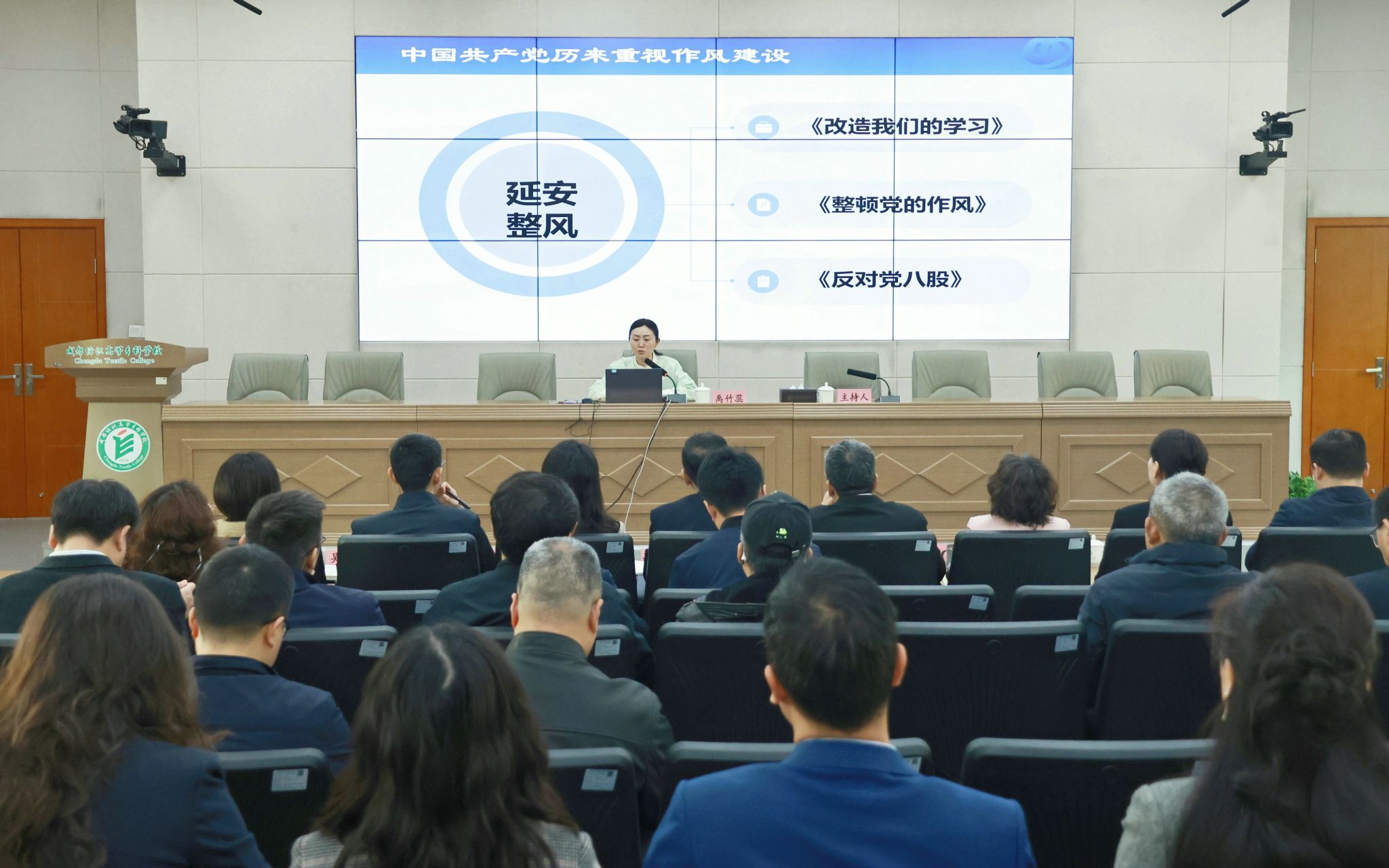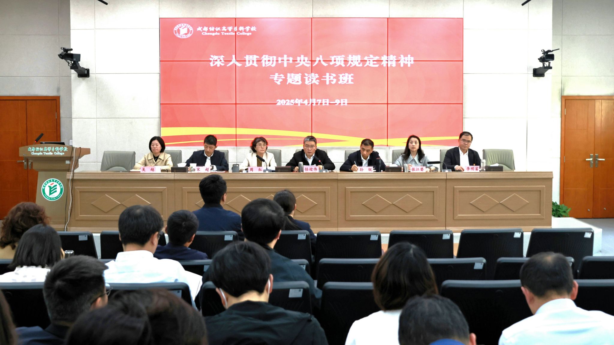 读书班期间,学校邀请省委党校禹竹蕊教授作辅导报告,通过重要节点回顾和典型案例剖析,深化党员干部对中央八项规定及其实施细则精神理解把握;集体参观眉山三苏祠家风馆,现场感悟艰苦奋斗、廉洁自律的中华优秀传统文化;集中观看中央八项规定精神专题教育片,深刻认识党风廉政建设和反腐败斗争必须常抓不懈、久久为功;深入开展交流研讨,11名关键岗位干部、新提拔干部、年轻干部结合工作实际交流学习感悟、明确思路举措,进一步筑牢以作风建设新成效推动学校事业高质量发展的思想根基,强化“强国建设、成纺有为”的行动自觉。