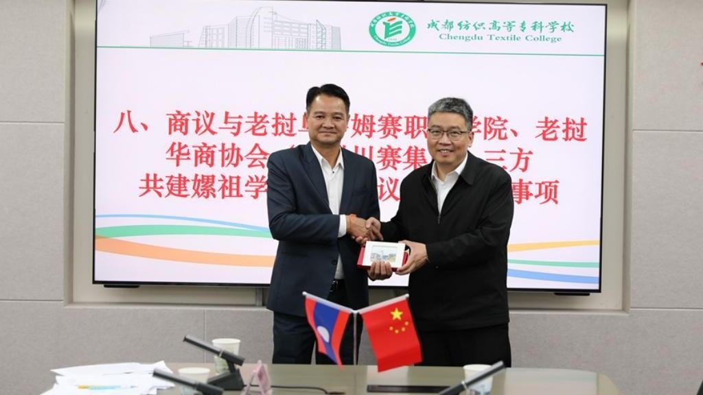 座谈会后,孙锐与张廷江进行了亚洲午夜成人满18免费网站与中老友谊学校共建嫘祖学院的签约仪式。任迎伟代表学校向老挝方赠送学校蜀锦文创产品。相信在双方共同努力下,共建嫘祖学院项目一定能够取得丰硕成果,为中老两国教育事业的发展注入新的活力,为中老友谊的巩固和发展谱写新的篇章!