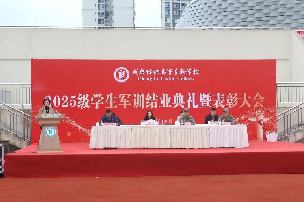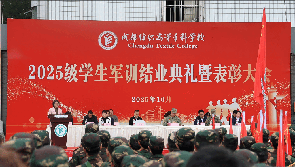 校领导在讲话中指出,同学们在十四天军训淬炼中证明自我,形成“昂起头”的勇气、“挺起胸”的豪气与“立定身”的骨气。期望同学们未来做到三点:一是“经纬织梦”,以技能报国践行家国担当,将个人理想与国家前途、民族命运紧密相连,用智慧汗水在平凡岗位创造不凡业绩,为实现中华民族伟大复兴贡献力量。二是“匠心织造”,以精益求精锤炼立业之本,以坚韧不拔与追求卓越的态度打磨技艺,勇于挑战,逐步成长为“能吃苦、技艺精、善创造”的高素质技术技能人才。三是“共纺锦绣”,以团结协作涵养校园新风,将集体荣誉感延续至学习生活,共同织就“团结、勤奋、求实、创新”的校园文化,助力个人全面发展。