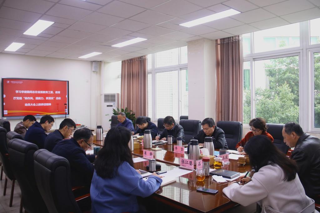 会上,蔡玉波书记领学了李建勤同志在省委教育工委、教育厅党组“转作风、提能力、 抓落实”活动动员大会上的讲话。蔡玉波强调,要把李建勤同志的讲话内容传达到每一个党支部,组织学校各级党组织深入学习贯彻。