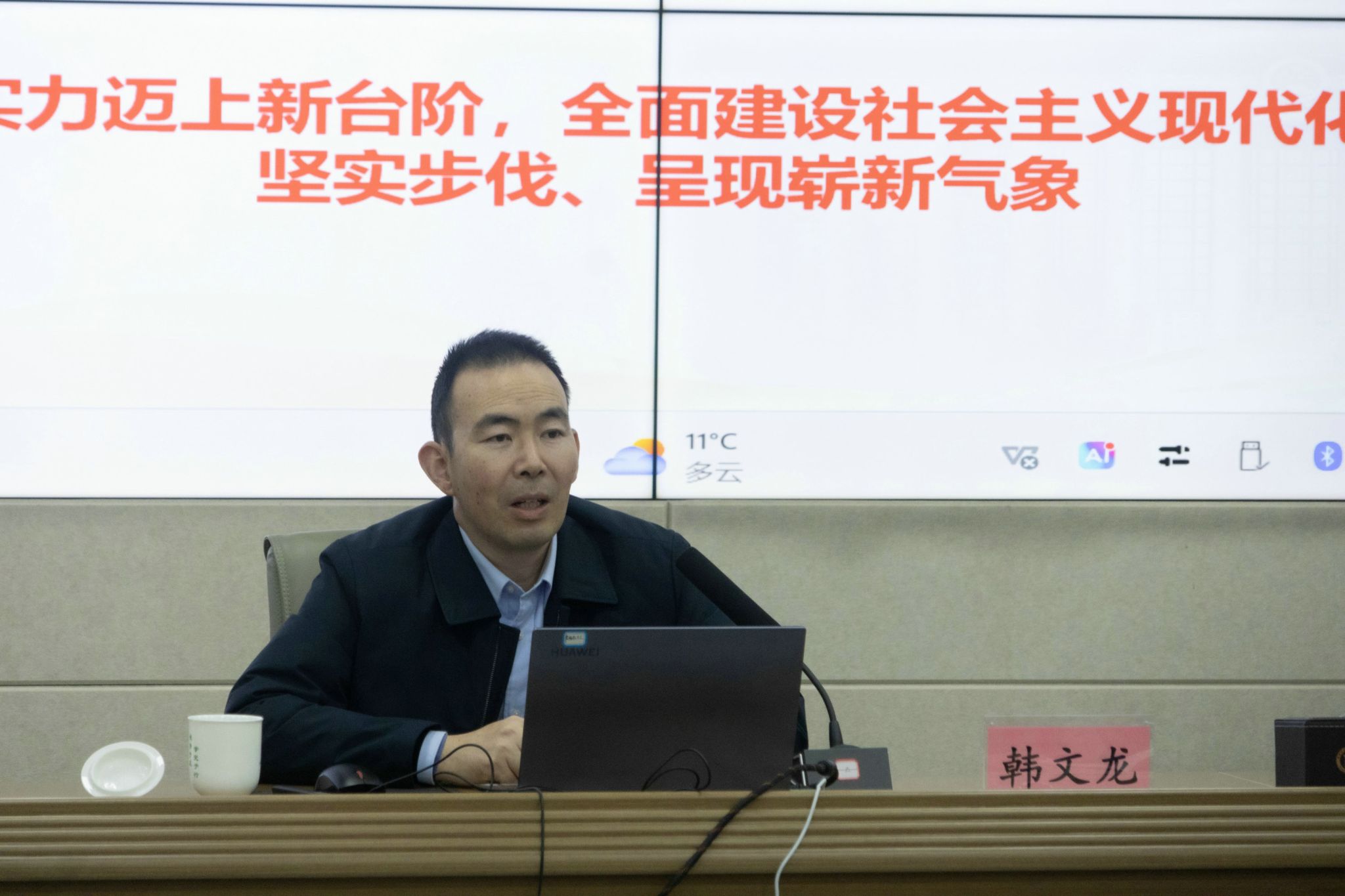在第一阶段,学校邀请省委宣讲团成员、西南财经大学韩文龙教授就党的二十届四中全会精神与习近平经济思想作辅导报告。党委副书记周红主持报告会,党委理论学习中心组成员、全体中层干部、各学院教师代表参加会议。