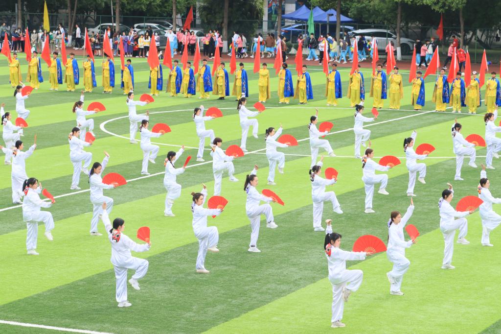 开幕式后,举行了精彩的大型团体操汇报演出。参演师生以传统与现代完美结合的表演,为观众呈现了一场精彩纷呈的中华传统文化盛宴。
