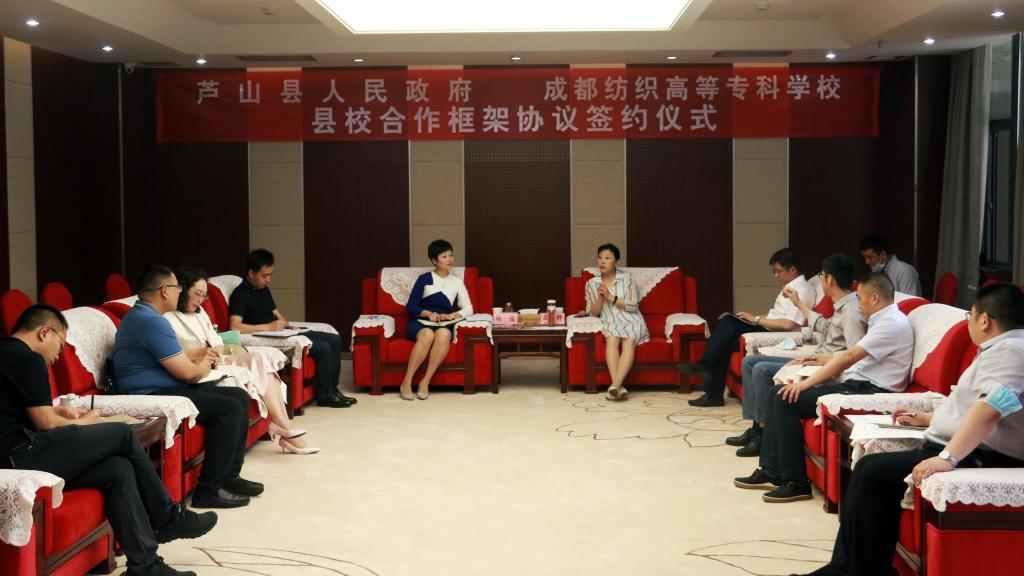 5月12日上午,四川省芦山县县长杨俊一行来校考察调研,与我校校长石静等就芦山纺织服装产业开展县校合作事宜进行交流,并共同签署县校合作框架协议,相约共建纺织服装技能人才培训基地、共同为芦山纺织园区培育纺织产业人才。