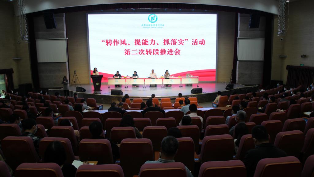 5月20日上午,我校在南苑多功能厅召开“转作风、提能力、抓落实”活动第二次转段推进会。会议对“转作风、提能力、抓落实”活动第二阶段开展情况进行总结,并对第三阶段工作进行安排部署。党委书记蔡玉波强调,全校上下要增强推动学校高质量发展的紧迫感、危机感,牢固树立“兴校有我、人人有责”的使命感,扛起当代成纺人的责任,团结一致行动起来,早日实现学校建设职教本科的奋斗目标。