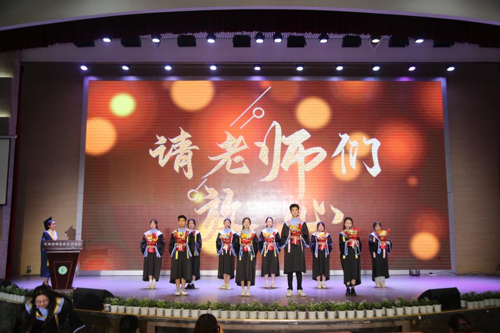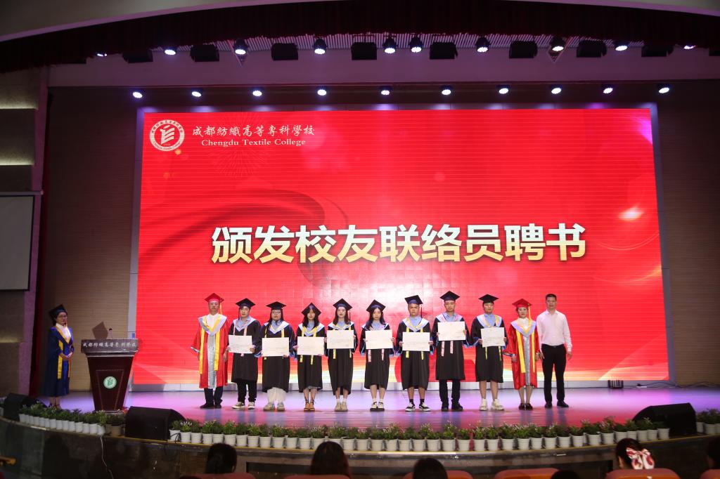 随后,蔡玉波书记、石静校长、校友黄龙为各学院校友联络员颁发聘书;同学们用诗歌《请老师们放心》和歌曲《不说再见》感恩老师的谆谆教诲,表达了对母校的不舍之情。