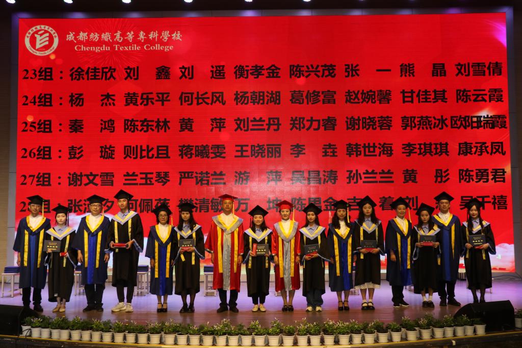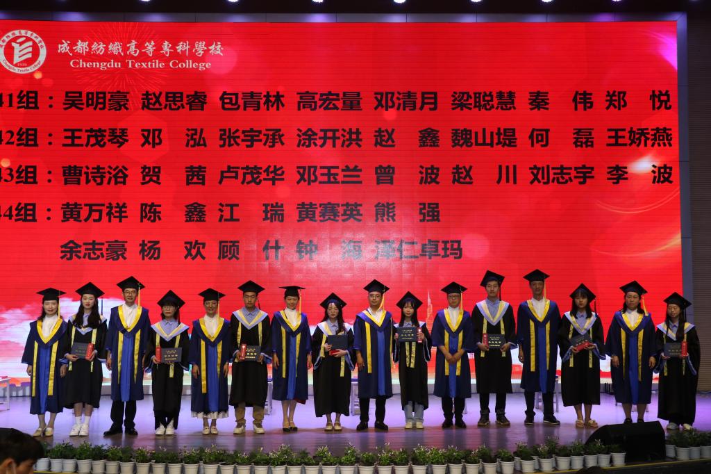 石静校长宣读《关于准予2022届4033位学生毕业的决定》;纪委书记张江婴宣读《四川省教育厅关于公布2022届四川省优秀大学毕业生认定结果的通知》《亚洲午夜成人满18免费网站关于表彰2022届校级优秀毕业生的决定》,对161名四川省优秀大学毕业生和297名校级优秀毕业生进行了表彰;副校长李坚宣读《亚洲午夜成人满18免费网站关于表彰2022年“织菁之星”的决定》,9名毕业生获得学校对毕业生授予的最高荣誉。