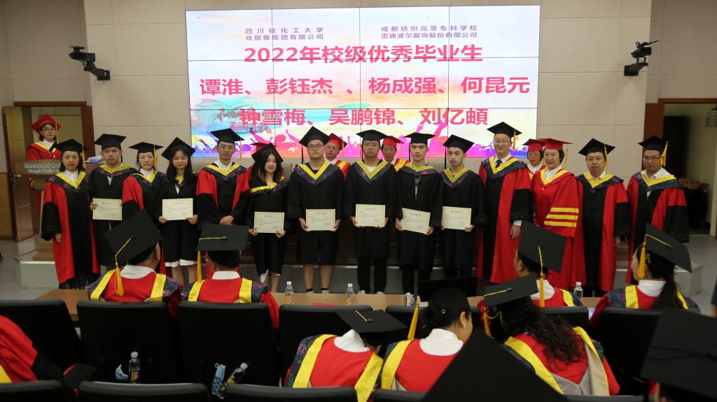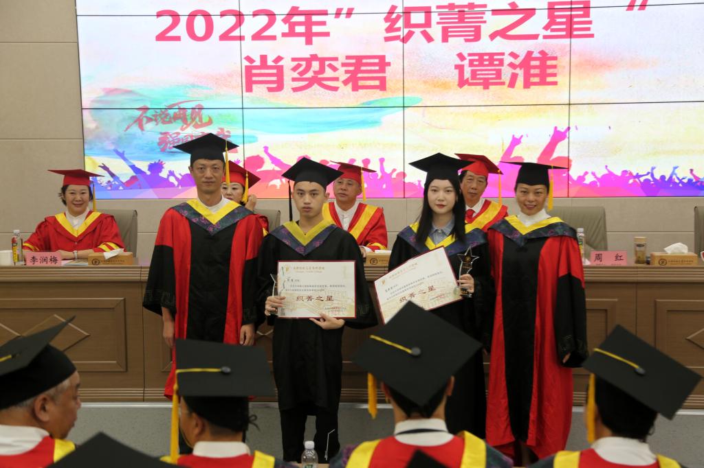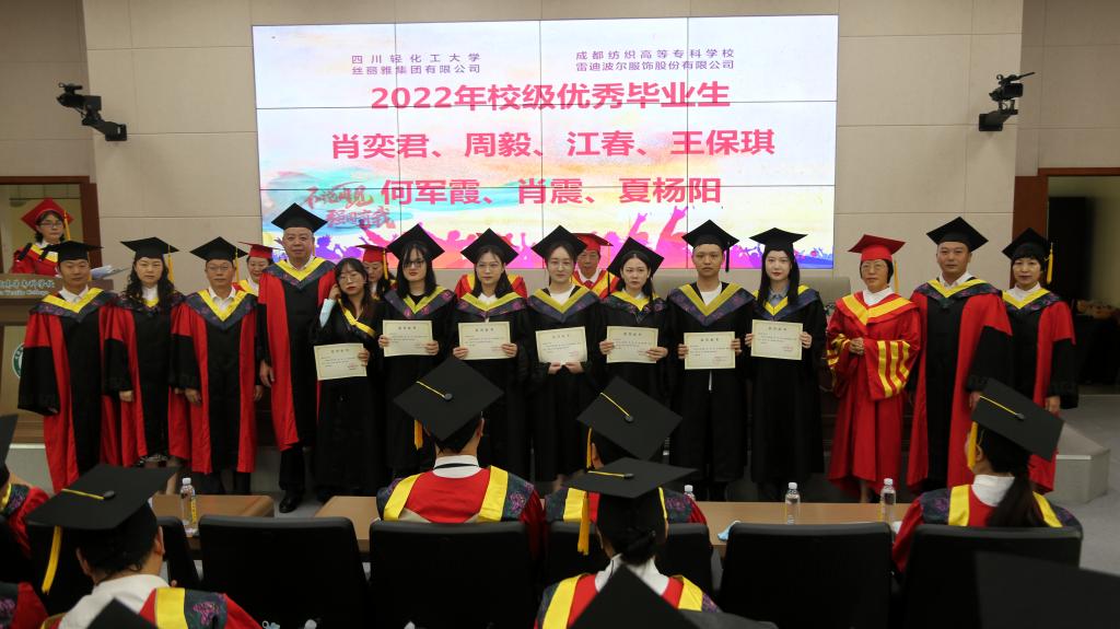 当日,肖奕君等3名学生被授予2022届四川省优秀毕业生称号,周毅等19名学生被授予“2022届四川轻化工大学优秀毕业生”称号,谭淮等2名学生被授予我校“织菁之星”称号;135人获学士学位。
