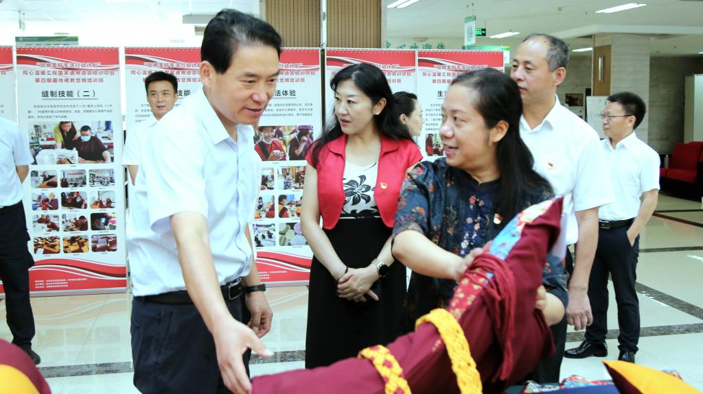 在我校,赵俊民出席了觉姆服饰制作培训班结业仪式,参观了学校色达非遗展馆、艺术设计展厅、蜀绣研究中心等场所,听取了学校关于民族地区非物质文化技艺传承保护、民族文化交流融合、民族团结进步教育等工作的汇报。他强调,要深入学习贯彻习近平总书记关于加强和改进民族工作的重要思想,发挥办学优势,为民族地区培养更多专业技能型人才,推动拓展民族特色产品,助力民族地区实现共同富裕,不断增强各族群众获得感、幸福感、安全感。