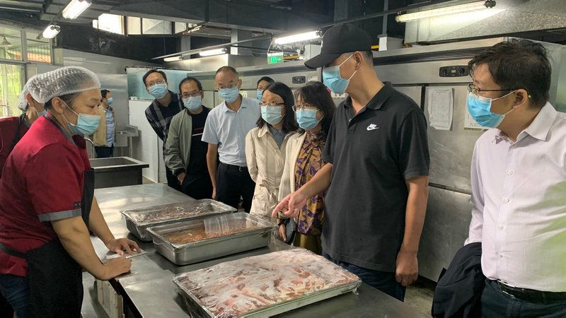 在南北苑食堂,蔡玉波对食品卫生安全、防控物资准备情况、饭菜质量及疫情防控措施落实等情况进行实地检查调研。他边走边看边询问,检查冻库、操作间、储物间等,详细询问食堂工作人员关于物资储备、食品留样等食品安全的情况。他反复向食堂负责人强调:必须高度重视食品安全,把好原材料进货关和食品安全关,保证师生的用餐安全。他还随机询问学生“学校饭菜怎么样”“价格怎么样”“在食堂有没有吃坏肚子的情况”,每到一处,都会随机抽查工作人员的健康码、行程卡、核酸检查报告等。