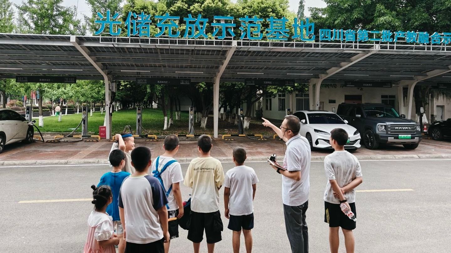 电信学院精心规划本次研学路线。在电信学院协作机器人实训室,学院党总支书记姚玲峰为小朋友们讲解工业机器人技术,以及机械臂如何精准高效地代替人工参与生产包装,让孩子们对科技的实用价值有了直观认知。在光储充放示范基地,小朋友们通过实地参观,深入了解了充电桩的工作原理、操作规范等相关知识,加深了大家对新能源设施的了解,还在指导下体验了智能充电操作流程。