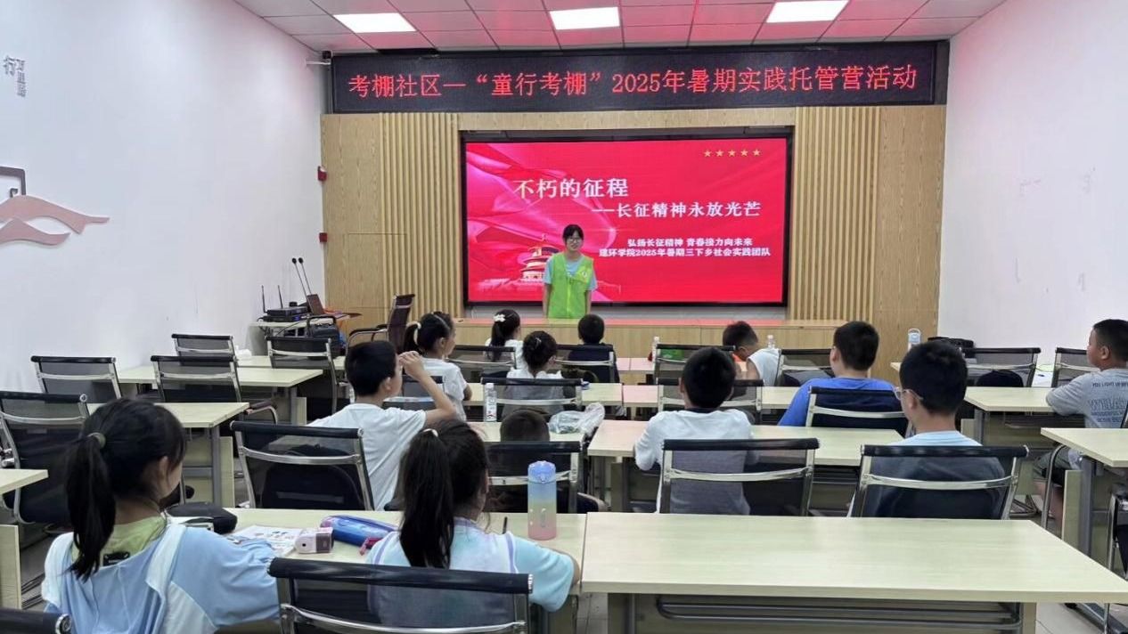 7月14日,在指导老师周笑敏、季俊玲带领下,实践团队走进考棚社区,为孩子们带来了一堂生动的长征精神宣讲课。