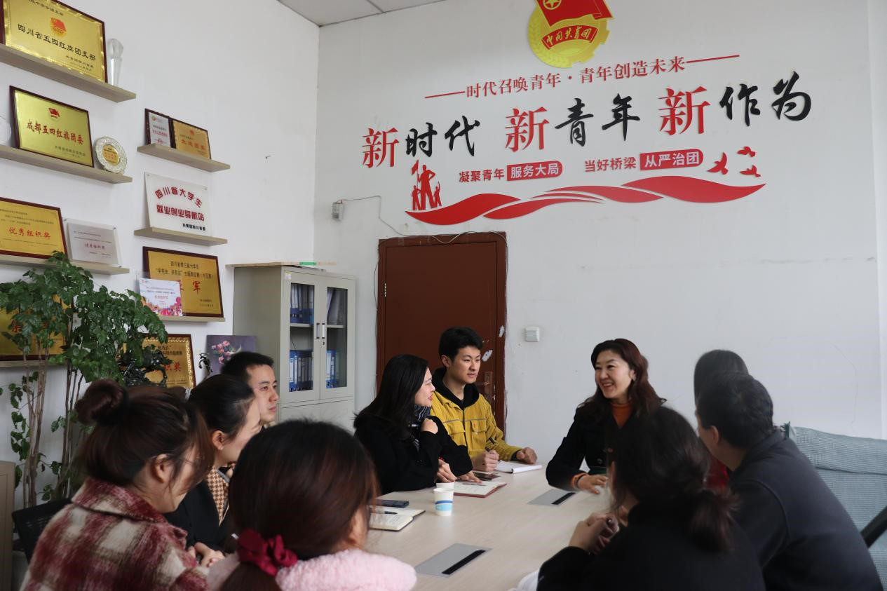 徐瑾汇报了团委新一年的工作规划。石静校长对校团委工作表示肯定,对团委接下来的工作进行了顶层设计和指导。她讲道,她与共青团有着很深的感情,来到团委感到非常亲切和温暖,共青团作为党的助手和后备军,工作要有规矩、有原则,不能墨守成规,要有创新思路和突破,要将好的经验进行推广。回忆起当初创立大学生综合素质A级证书制度的场景,她说那就是一次工作的创新,希望校团委在此基础上再突破。石静向师生们详细解释了“三心双艺”和“四个成纺”的涵义。座谈在一片欢声笑语中结束。