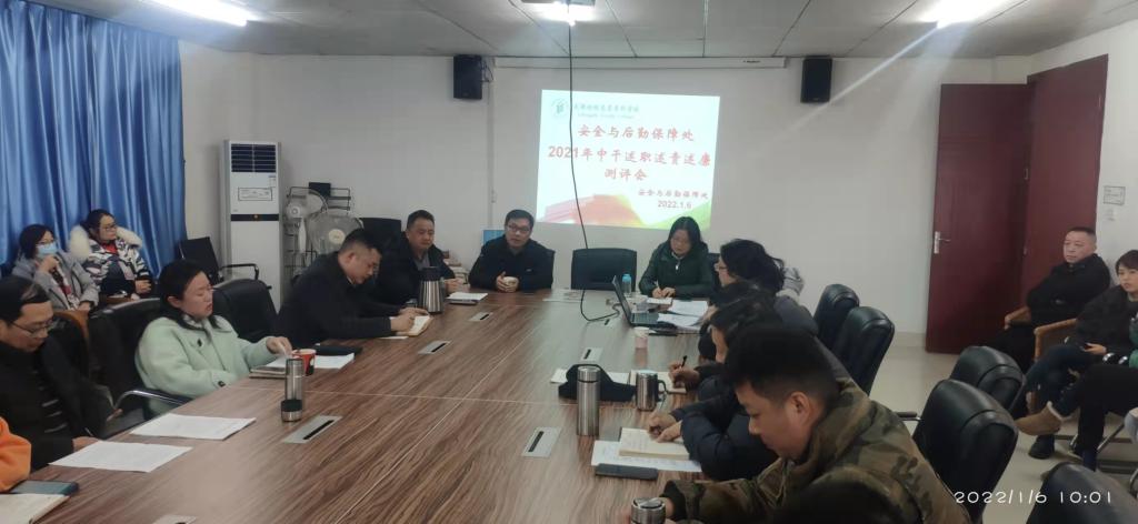 1月6日上午9时,安全与后勤保障处在北苑食堂三楼保障处会议室召开2021年度中层干部述职述责述廉测评会。学校副校长李坚、党委宣传部副部长王歆、纪委监察处吴娅、党委组织部郑丽枭和全体教职工参加会议。