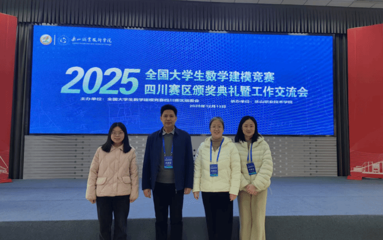 12月12日至14日,2025全国大学生数学建模竞赛四川赛区颁奖暨工作交流会议在乐山职业技术学院召开。我校副校长蒲冰远教授,数学建模负责人王长辉,指导老师石丽莉、张雪莉一同参会。