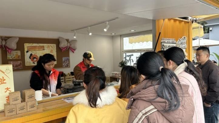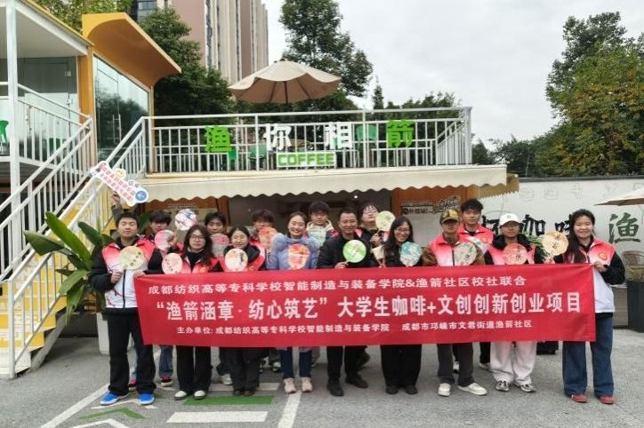 12月14日上午,智造学院团总支青年志愿者协会走进邛崃市渔箭社区党群服务中心,与社区工作者携手举行“渔箭涵章·纺心筑艺”大学生咖啡+文创创新创业项目主题活动。智造学院团总支负责老师朱晏梅,渔箭社区书记宋建军、全体工作人员和社区居民参加活动。