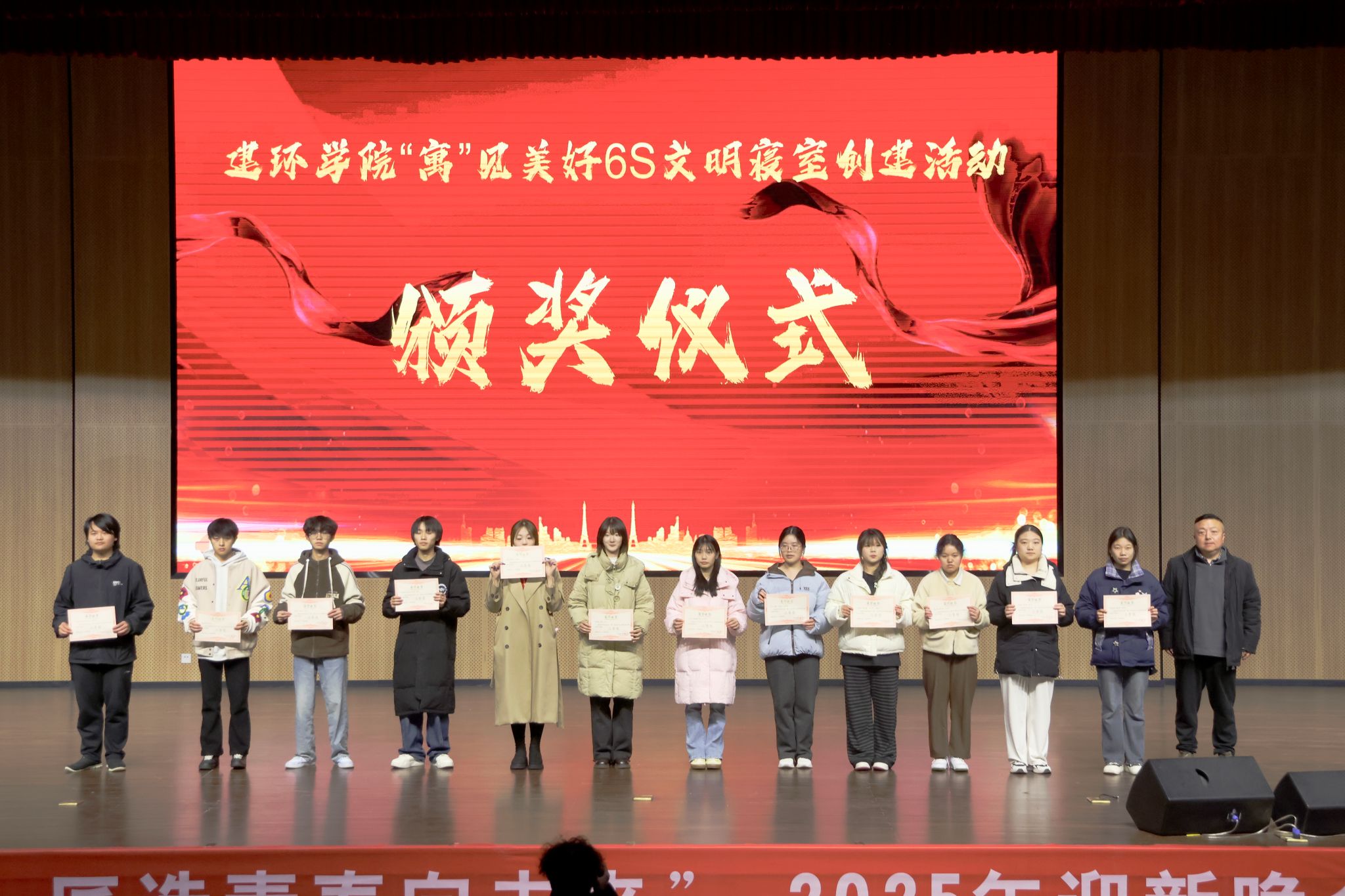 表彰环节,参会领导及嘉宾为6S文明寝室、第一届“建环杯”乒乓球比赛、院级职业生涯规划大赛的获奖集体与个人颁发荣誉证书。一张张证书,是对学子努力的认可,更是对全体同学的激励,为学院树立了奋进标杆。