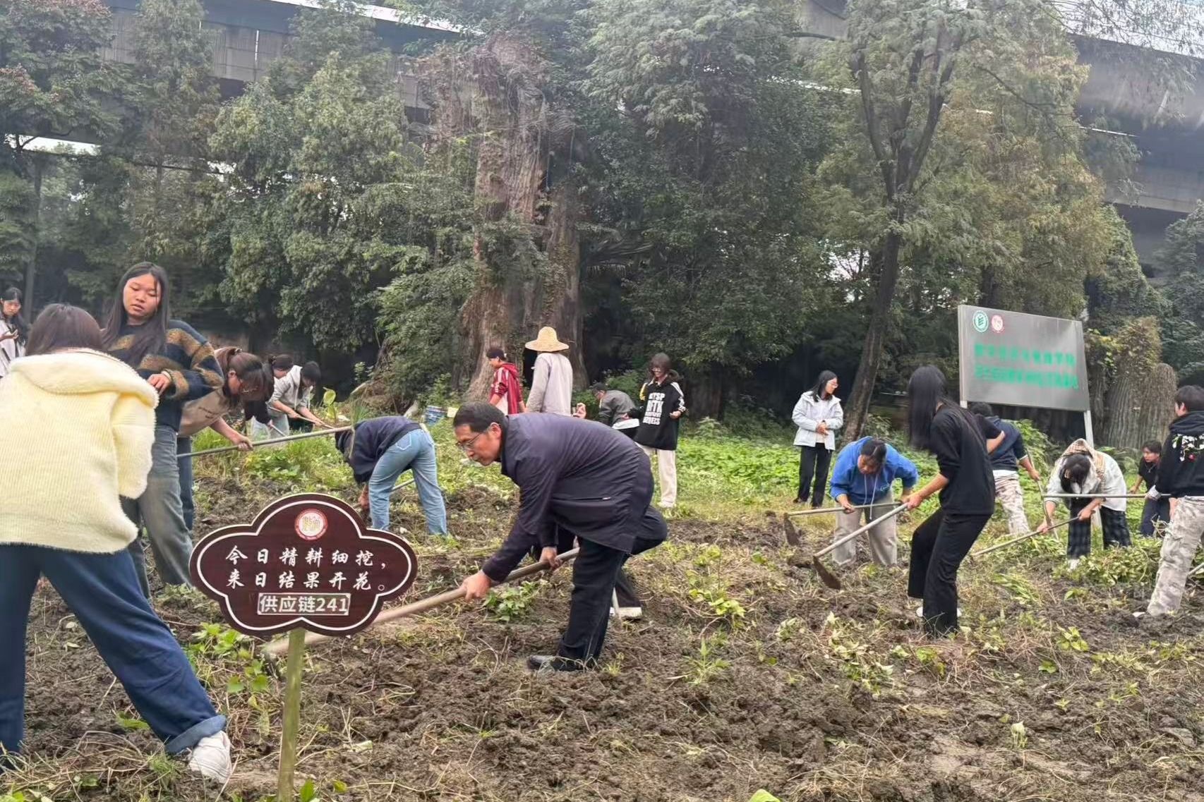 11月中旬至月末,种植实践接续推进。供应链251、电商251、电商252三个班级的97名学子,对采收后的红薯地进行松土、清除残根,为油菜苗移栽筑牢基础。在冉隆奎老师的细致指导下,同学们扶正嫩绿菜苗、细心填土压实,后续及时排查补栽未成活的幼苗,每一个环节都精益求精,用严谨态度呵护劳动成果,在劳作中锤炼责任担当。