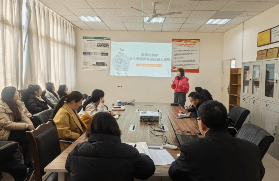 为深耕课程思政建设沃土,激活课堂育人内生动力,全面提升教师教学能力与育人实效,12月23日下午,通识学院举行课程思政融入策略专题分享会,特邀马克思主义学院刘颖婕老师作专题分享。学院院长陈骑兵、副院长杨岚及全体教师参加会议。