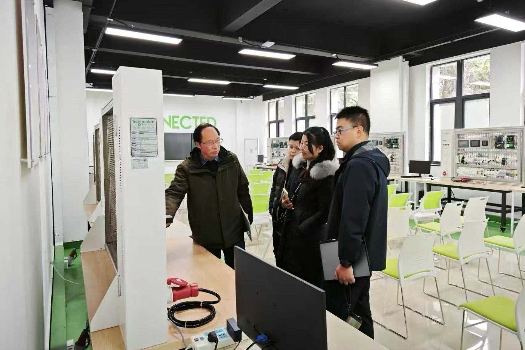 会后,谢成诚一行实地参观电信学院实训中心及法国施耐德电气绿色低碳技术应用中心,详细了解我校在实训教学、技术应用与产业对接方面的建设成效,并对相关实践平台的建设水平给予了高度评价。