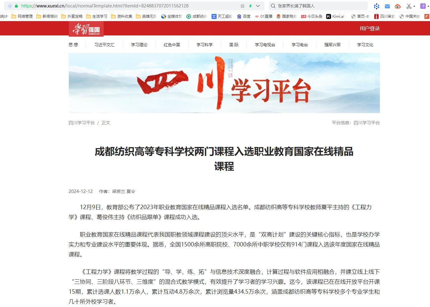 12月9日,教育部公布了2023年职业教育国家在线精品课程入选名单。亚洲午夜成人满18免费网站教师夏平主持的《工程力学》课程、葛俊伟主持《纺织品跟单》课程成功入选。