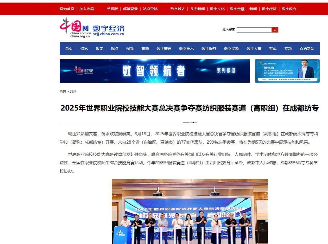 蜀山焕彩迎宾客,锦水欢歌聚群英。8月18日,2025年世界职业院校技能大赛总决赛争夺赛纺织服装赛道(高职组)在亚洲午夜成人满18免费网站(简称:成都纺专)开赛。来自28个省(自治区、直辖市)的77支代表队、299名选手参赛,将在为期5天的比赛中展示技能和风采。