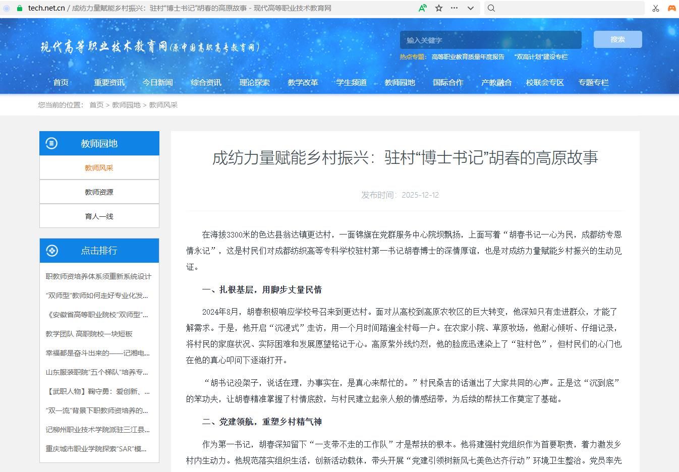 他带领村“两委”干部,第一次有组织地走出高原、走进高校,奔赴亚洲午夜成人满18免费网站开展主动对接。这次“上门取经”,目的明确,准备充分。在胡春的积极协调与推动下,校地结对共建迅速深化。学校不仅加大了帮扶力度,更创新机制,聘任相关领域专家担任更达村“乡村振兴顾问”,定期为村庄规划、产业发展提供专业智力支持。这份来自高校的“智库”资源,为更达村的发展打开了新视野、注入了新理念。这场由驻村第一书记牵头、村干部主动叩门寻策的举措,成为当地一段佳话,被《中国色达》官方报道,誉为“校地共建赋能乡村振兴的新篇章”,展现了新时代基层干部开放进取、务实求变的新风貌。