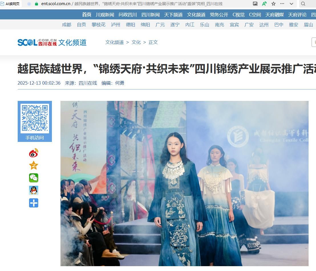 越民族越世界,12月12日,一场兼具民族文化韵味与国际时尚范的服饰大秀在成都市天府国际动漫城引发众多围观,这正是“锦绣天府·共织未来”四川锦绣产业展示推广活动特别打造的动态秀场。