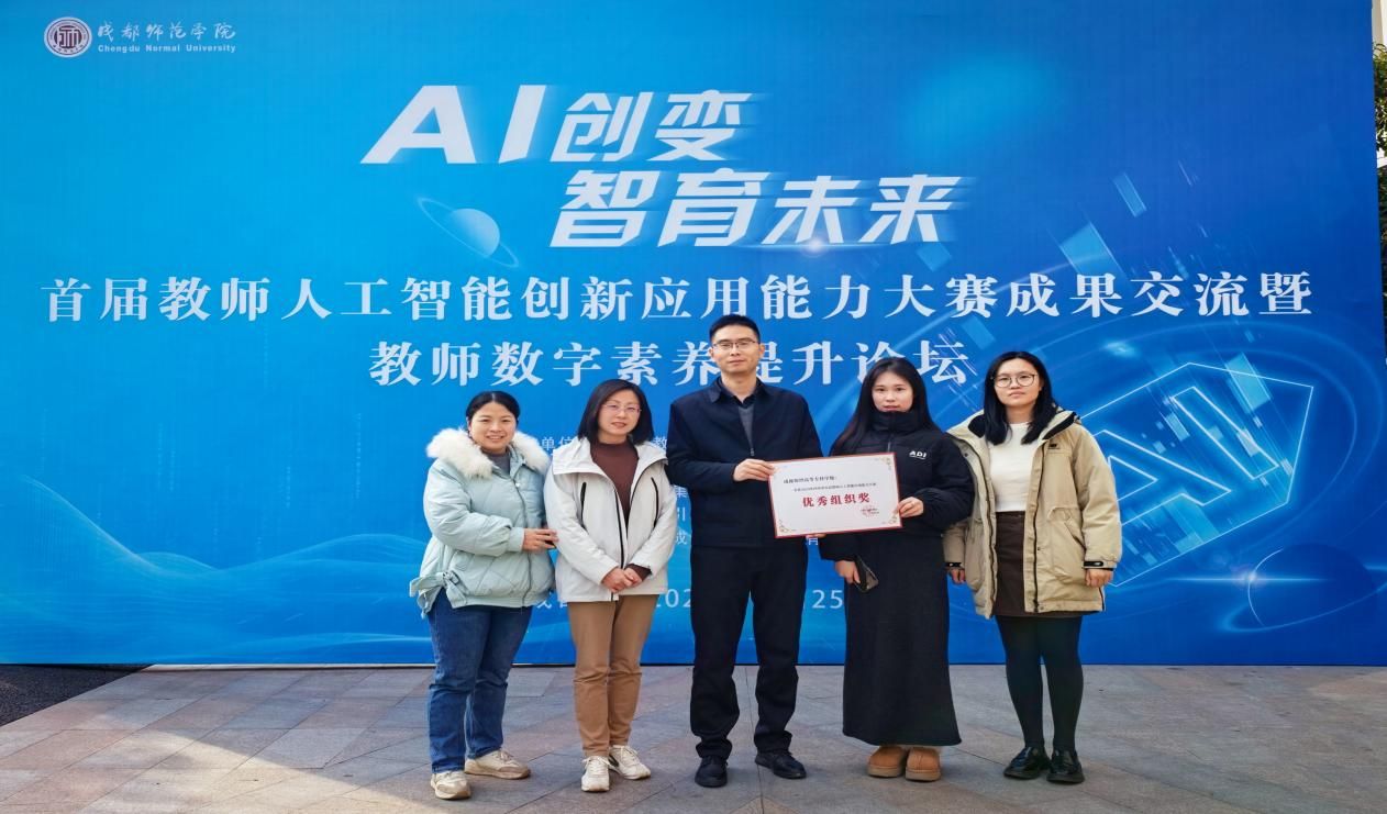 12月25日,首届教师人工智能创新应用能力大赛成果交流暨教师数字素养提升论坛在成都师范学院举行。我校因在赛事组织协调、教师广泛动员及参赛作品孵化培育等方面的突出表现,被四川省教育厅授予2025年四川省首届教师人工智能应用能力大赛优秀组织奖。