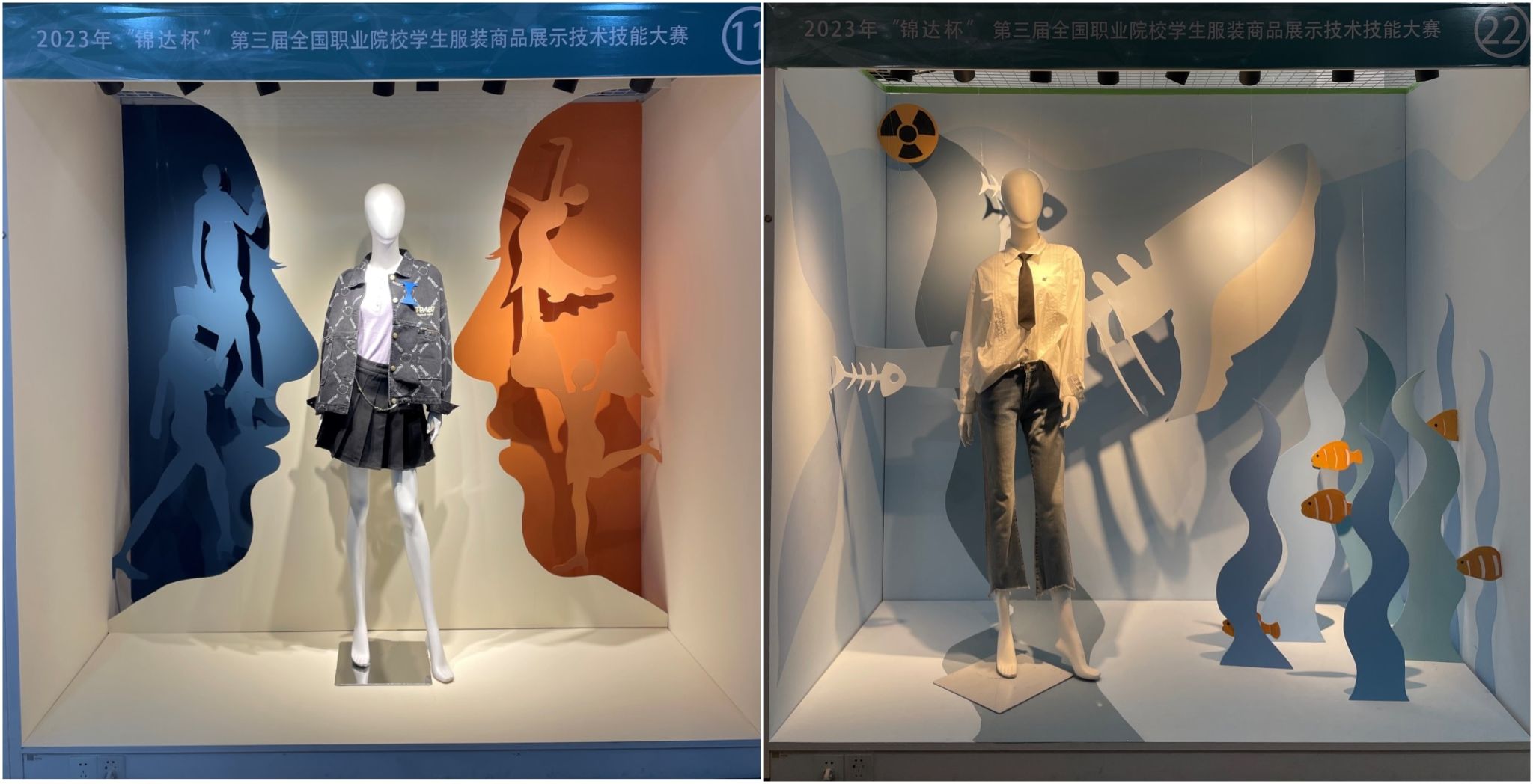 大赛由中国纺织服装教育学会主办,无锡工艺职业技术学院承办,以服装陈列与展示设计专业教学标准和服装陈列“1+X”职业技能等级标准为指导依据,结合世界技能大赛“商品展示技术”项目和专业实际岗位要求来组织命题。大赛共设置橱窗展示设计和服装陈列设计两个赛项,橱窗展示设计赛项为团队赛,每个团队由两名参赛选手组成,设置调研分析、方案设计、安装准备、橱窗安装等比赛模块,要求参赛选手在8小时内,根据现场给定的服装、材料和工具,完成主题橱窗方案设计、道具设计与制作、橱窗安装搭建等,既要进行创意、灵感、实操技能的大比拼,又必须体现较强的创意性、审美性、艺术性。服装陈列设计赛项为单人赛,要求选手在4.5小时内,依次完成职业技能理论测试、店铺规划设计、陈列组合实操三个模块的竞赛内容,重点考察选手对品牌货品的理解与展现、对商品不同陈列方式的应用以及对服装卖场整体规划与设计的能力,充分检验选手的综合职业能力。