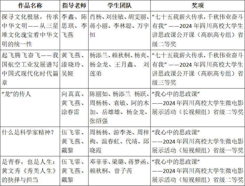 4月30日,2024年习近平新时代中国特色社会主义思想大学习领航计划主题教育活动省级评选揭晓。我校在“我心中的思政课”——2024年四川高校大学生微电影展示活动中获得一等奖1项、二等奖2项;在“七十五载薪火传承,千秋伟业奋斗有我”——2024年四川高校大学生讲思政课公开课”活动中获得二等奖1项、三等奖1项。