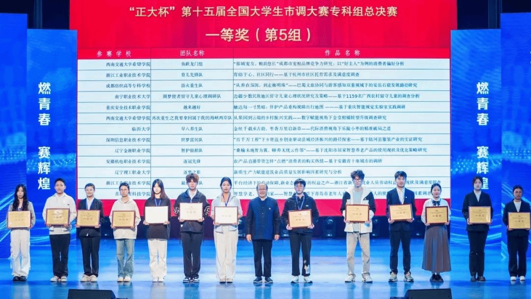 全国大学生市场调查与分析大赛自2010年创办以来,已连续7年跻身《全国普通高校学科竞赛榜单》前列,是国内高等教育领域极具影响力的学科竞赛,也是政府支持、企业认可、高校师生积极参与、海峡两岸高度联动的统计及商科实践教学平台。第15届全国大学生市场调查与分析大赛共有1184所高校、34.2万名学生报名参赛。专科组经过校赛、省赛、全国赛初赛的层层选拔,最终155支团队、800余名师生晋级全国总决赛。